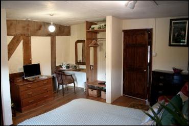 StoweThis charming double room has an en suite toilet and basin, and a desk area. Again, the view of the hills is an ever-present reminder that Parliament Barn is surrounded by English landscape at its very best. |